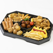 特製から揚げ、粗挽きポークウインナー、グリルチキンハーブ、肉団子、ポテトフライ、ベイクドポテト、ペンネ、ミートオムレツ