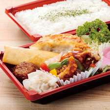 鶏甘酢あんかけ、焼餃子、春巻、焼売、肉団子