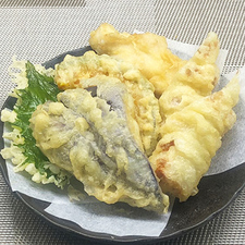 【天ぷら】盛合せ(鶏ささみ・茄子・大葉・かぼちゃ・竹輪)