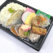 サバ塩焼き、竹輪いそべ天ぷら、煮物、八幡巻、焼売、玉子焼き、かまぼこ